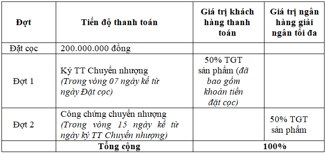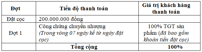 – Khách hàng áp dụng tiến độ thanh toán như sau: