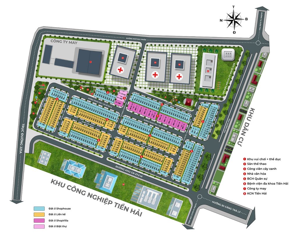 ➜ 2. Đầu tư kinh doanh sinh lời đắc thắng, sẽ trở thành khu đô thị dịch vụ thương mại sầm uất bậc nhất khi tiếp giáp KCN Tiền Hải đón nguồn khách dồi dào từ các nhà máy, công ty, gần kề bệnh viện và khu dân hiện hữu.
