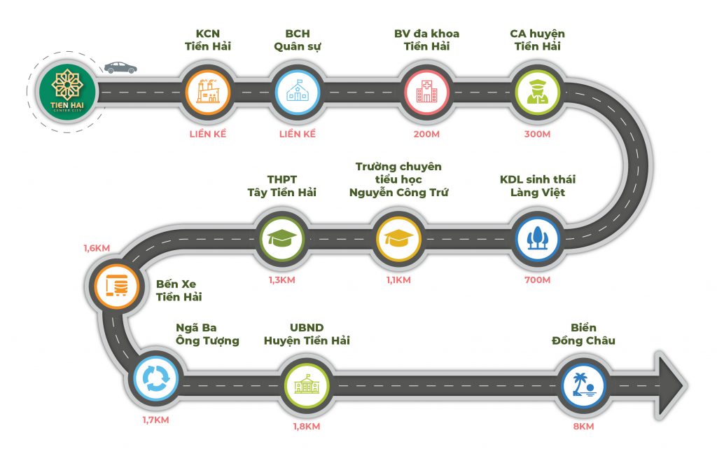 Thừa hưởng hạ tầng đồng bộ hiện hữu, Tiền Hải Center City kết nối thuận tiện đến các các cơ quan Hành chính, Y tế – Giáo dục, trung tâm Văn hóa – Thể thao – Giải trí chỉ trong vòng bán kính 2km.