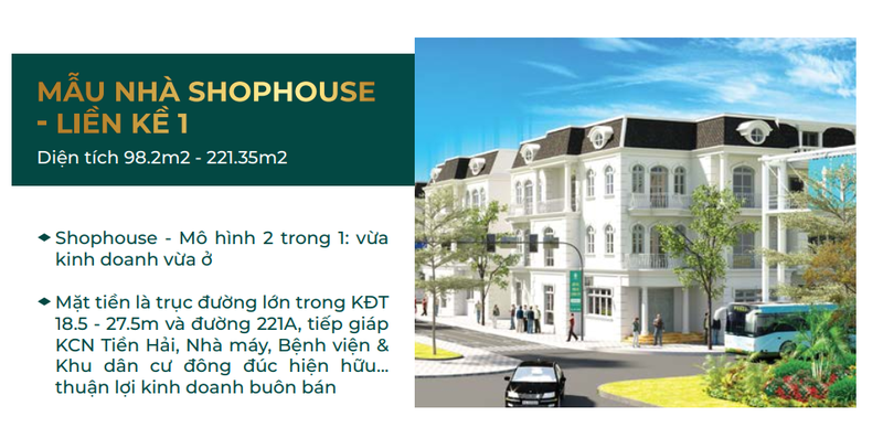 ➜ 2. Đầu tư kinh doanh sinh lời đắc thắng, sẽ trở thành khu đô thị dịch vụ thương mại sầm uất bậc nhất khi tiếp giáp KCN Tiền Hải đón nguồn khách dồi dào từ các nhà máy, công ty, gần kề bệnh viện và khu dân hiện hữu.