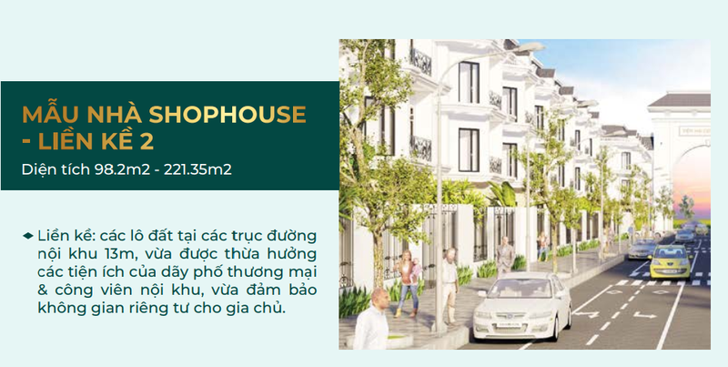 – Cơ cấu sản phẩm: 331 lô Shophouse & Liền kề, 15 lô Shop Villa & Biệt thự